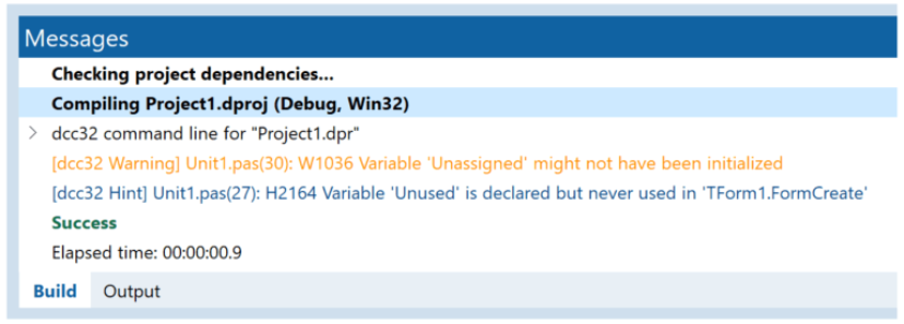 - The Messages view uses different colours for compiler errors, messages, and hints to better highlights issues (the colours can be customised)