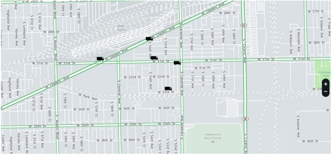 Validation – Execute producer script to simulate vehicles tracked via IoT devices and monitor via dashboard.