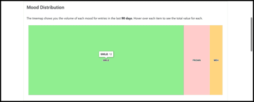 - Valuable AI insights: The use of machine learning and text analytics to classify entities in journal entries makes it easier to visualise what made you smile that day. You may find it helpful to see which people, locations, and activities contribute to your mood changes, enabling you to make informed decisions to improve your mental health.