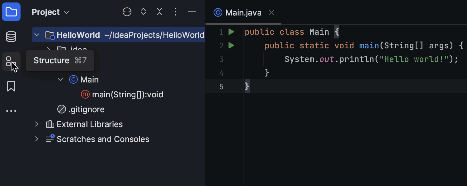 You can now choose how you want the tool window icons to appear in the IDE. By default, the icons in the tool window header appear on mouse hover or when the tool window is focused. Now, you can set it so that they are always visible. To configure it, go to Settings/Preferences | Advanced Settings | Tool Windows.